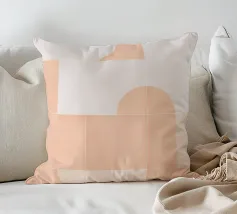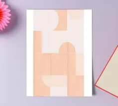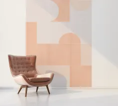 Mid-eeuws modern patroon geïnspireerd op mid-eeuwse tegelvloeren en muurschilderingen. Strakke lijnen, eenvoudige vormen, rumoerige textuur en roze parelmoerpalet.