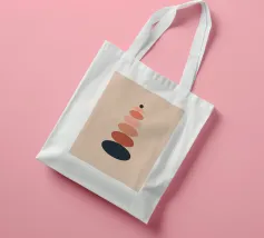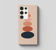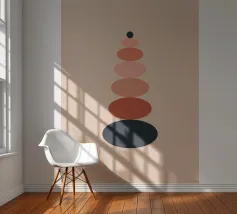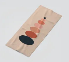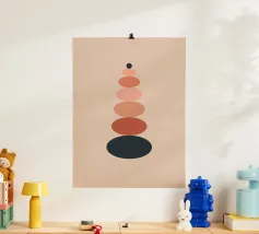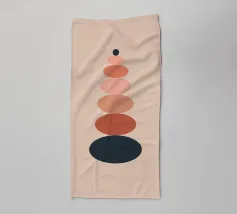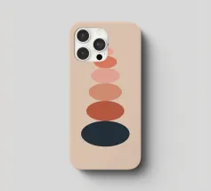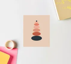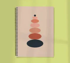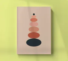 Een reeks gestapelde, ovale vormen in verschillende maten en tinten vormen een toren. De kleuren gaan vloeiend over van donker aan de onderkant naar lichtere tinten aan de bovenkant, met als hoogtepunt een kleine, donkere cirkel.