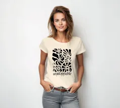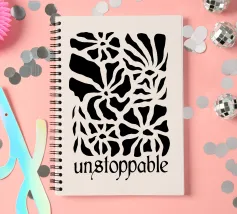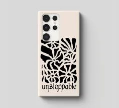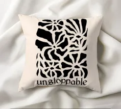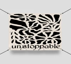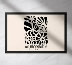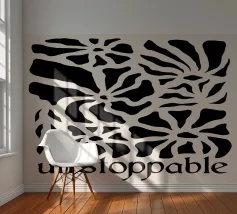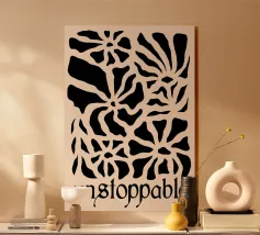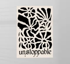 Als je niet te stoppen bent als je je dromen en ambities najaagt, dan is dit het juiste ontwerp voor jou. Abstracte zwarte bloemen met typografie. Omdat dit ontwerp in vier kleurvariaties wordt geleverd, kan het worden gecombineerd tot een set van 2, 3 of 4.