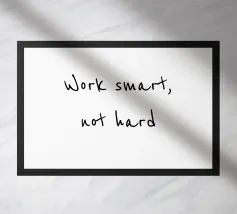 "Werk slim, niet hard" - de perfecte herinnering om slim en efficiënt door het leven te gaan! Deze minimalistische zwart-wit poster met handgeschreven typografie brengt stijl en motivatie aan elke muur. Ideaal voor je kantoor, thuiswerkplek of als dagelijkse inspiratie. Eenvoudig, modern en vol kracht!