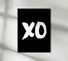 Druk genegenheid uit met deze opvallende "XO" kunstdruk, met grote witte handgetekende letters op een gewaagde zwarte achtergrond. Het tijdloze symbool voor "knuffels en kusjes" voegt een vleugje liefde en warmte toe aan elke ruimte. Perfect voor slaapkamers, woonkamers of als een attent cadeau voor geliefden. Het minimalistische ontwerp past bij verschillende inrichtingsstijlen, van modern tot klassiek. Deze print is gemaakt van hoogwaardige materialen, heeft een blijvende visuele impact en dient als dagelijkse herinnering aan liefde en verbondenheid. Een veelzijdig stuk dat genegenheid viert op een eenvoudige maar krachtige manier.