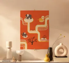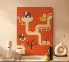 Breng het plezier van een dierenpark in huis met de Retro Pop Zoo print! Dit ontwerp combineert een kleurrijke moderne retro popstijl met illustraties van schattige en aaibare dieren.