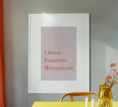 Een typografisch statement in drie krachtige woorden: GOOD - VIBES - ONLY. Elk woord in een andere kleur, elke regel met een lange schaduw - visueel luid, emotioneel duidelijk. De pastelgroene achtergrond brengt lichtheid, terwijl rood, blauw en geel energie, rust en optimisme symboliseren.