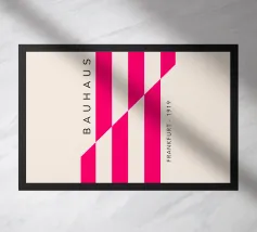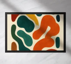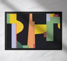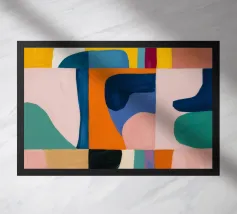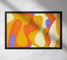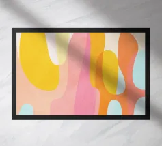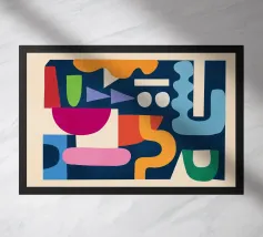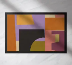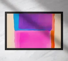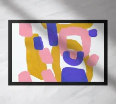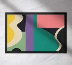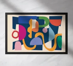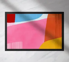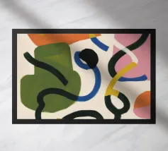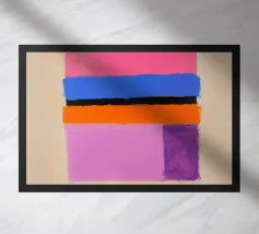 Deze moderne poster combineert drie rechtopstaande, gekleurde balken met een gebogen lijn die zich door het beeld slingert. De heldere geometrie ontmoet organische beweging, de kleuren - roze, oranje, geel en paars - creëren diepte en energie. Ideaal voor creatieve kamers, moderne woonconcepten en designliefhebbers die heldere vorm en lichtheid willen combineren.