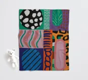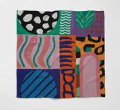 A vibrant grid showcases an eclectic mix of patterns, from polka dots and stripes to abstract organic shapes, creating a rich and decorative modern patchwork.