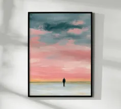 Sunset Gradient is een meditatieve studie in zacht licht en abstracte beweging en roept het zachte overgaan van de dag in de nacht op. Met zijn gloeiende tinten van perzik, roségoud en gedempt oranje versmelt deze minimalistische compositie sfeer en emotie tot een rustig statement. Perfect voor moderne interieurs die verlangen naar rust en warmte.
