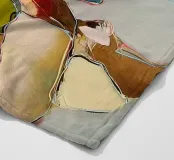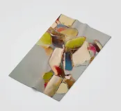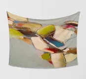 Dit kunstwerk toont een harmonieus samenspel van organische kleurvlakken in warme aardetinten, delicate pastelkleuren en diep donkerblauw. De zachte overgangen en heldere gekleurde lijnen creëren een modern, abstract motief dat rust en elegantie uitstraalt. Ideaal als hedendaagse wanddecoratie, brengt het stijl en lichtheid in elke kamer.