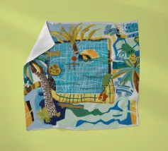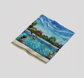 Strak en modern of speels en gedurfd, het ontwerp weerspiegelt de vrijheid van beweging en een connectie met zon, zee en zelfexpressie. Tegen strandscènes, zwembaden of abstracte achtergronden straalt het stuk warmte, energie en individualiteit uit - een visuele ode aan zonnige dagen en zorgeloze momenten.