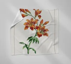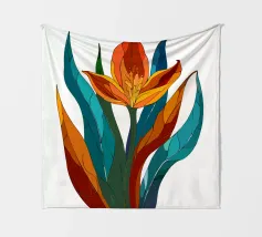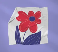 Een prachtig gedetailleerde illustratie van een rode en blauwe irisbloem op een lichte achtergrond, met levendige bloemblaadjes en zachte, natuurlijke verlopen. De sierlijke stengel en bladeren versterken de artistieke aantrekkingskracht.