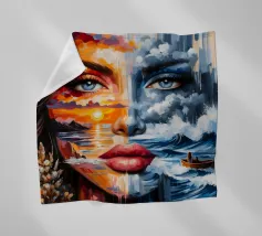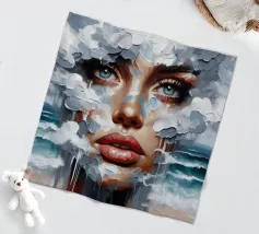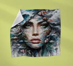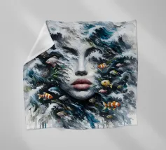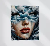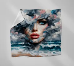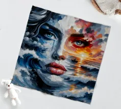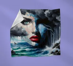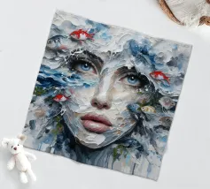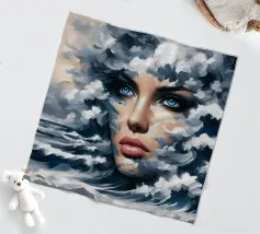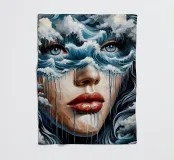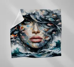 Painting of woman in the sea with waves surrounding her.