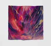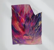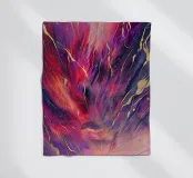 This vibrant abstract painting features a dazzling interplay of reds, purples, and gold, evoking a sense of cosmic energy and celestial beauty.