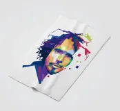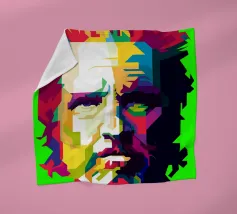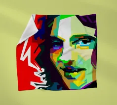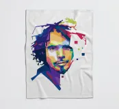 A striking WPAP portrait of The Voice, the legendary rock vocalist known for his powerful voice and emotional depth. Rendered in bold geometric shapes and vibrant contrasting colors, the artwork captures his intense gaze and iconic presence, blending modern pop-art energy with the raw spirit of grunge."