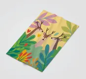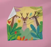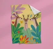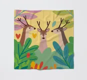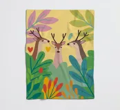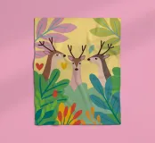 De elegante illustratie toont drie sierlijke herten op een zachte achtergrond.