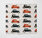 Das Bild zeigt drei stilisierte Retro-Autos, die farbenfroh und grafisch gestaltet sind. Jedes Auto hat ein einzigartiges Muster—von Punkten bis zu schlichten Farbflächen. Die kräftigen Farben und klaren Linien verleihen dem Bild eine spielerische und illustrative Ästhetik, die an moderne Pop-Art oder vereinfachte Grafikdesigns erinnert.