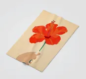 "Hibiscus Affection" toont de zachte omhelzing van een oranje hibiscus in de hand, die de warmte en tederheid van de menselijke band met de natuur vastlegt. De levendige bloei symboliseert liefde en rust en biedt een moment van serene schoonheid.