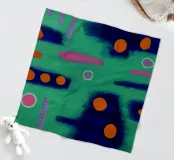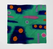Abstract schilderij met een levendige compositie van vormen en kleuren. De achtergrond is een textuurmix van groene tinten, die een illusie van diepte creëert. Verspreid over het doek staan gedurfde oranje cirkels, sommige effen en andere met alleen contouren, die scherp afsteken tegen het groen. Onderbroken roze streken voegen warmte toe aan het tafereel, terwijl paarse stippellijnen voor een speels ritme zorgen. Een paar eenzame grijze cirkels lijken te zweven in dit dromerige landschap. Dit kunstwerk roept een gevoel van grilligheid op door het gebruik van kleurcombinaties en gevarieerde geometrische vormen.