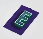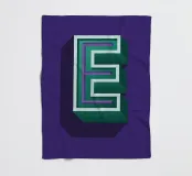 Hoofdletter "E" in reliëf met structuur en details op een blauwe achtergrond.