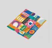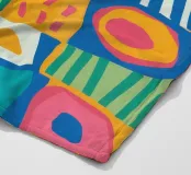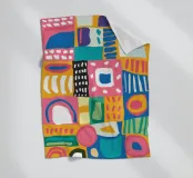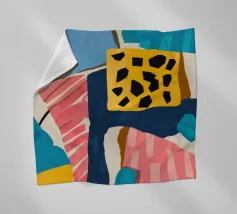 Een levendige abstracte compositie die lijkt op een lappendeken, met verschillende kleurblokken, geometrische patronen en texturen die een levendig, tastbaar ontwerp creëren.