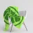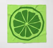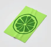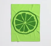 Een gestileerde groene limoen met krachtige, strakke lijnen steekt af tegen een lichtgroene achtergrond. Het eenvoudige ontwerp benadrukt de partjes en schil van de limoen.
