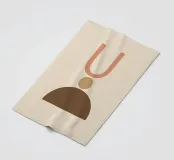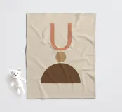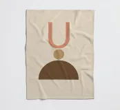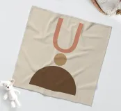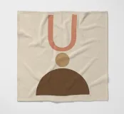 Geometrische vormen in gedempte tinten vormen een abstracte compositie. Een U-vorm, een cirkel en een halve cirkel creëren een minimalistisch ontwerp.