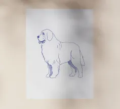 Blauwe lijntekening van het hondenras Neufundländer.