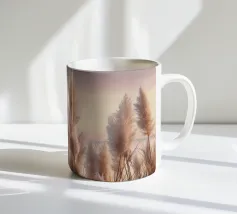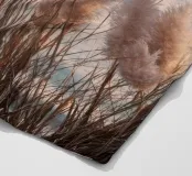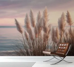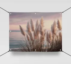 Wie ein zarter Traum erhebt sich das Pampasgras am Ufer; filigran, leicht, beinahe schwerelos. In sanften Rosa-, Apricot- und Lavendeltönen schimmert der Himmel über dem stillen Wasser. Die Luft scheint voller Poesie, als würde jeder Halm eine kleine Geschichte vom Frieden des Abends erzählen. Kein Laut stört die Harmonie. Die Komposition verströmt pure Sanftheit, ein Innehalten im Moment. Ideal als meditative Naturaufnahme für Räume, die Ruhe, Weite und Eleganz ausstrahlen sollen. Dieses Bild schenkt dem Alltag eine sanfte Flucht ins Träumerische.