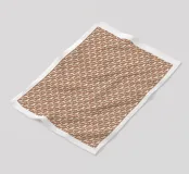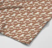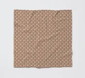 Een repetitief geometrisch patroon van witte vormen tegen een bruine achtergrond creëert een uniform en ritmisch ontwerp. De ordening van de vormen vormt een doorlopend en naadloos visueel effect.
