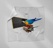 Comical illustration of a socio-political comment on the way education has become a mechanism rather than a system to develop minds. Everything is copy, repeat, copy repeat, parrot fashion.