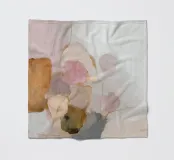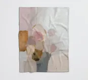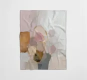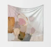 Deze abstracte natuurillustratie combineert zachte kleuren in lichtroze, beige en lichtgrijs met organische kleurvlakken en fijne details. De combinatie van penseelstreken en gedempte tinten creëert een dromerige, grillige scène die perfect past bij een moderne inrichting.