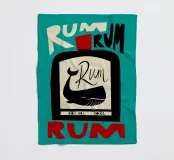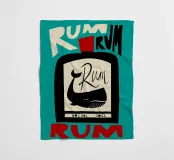 Mid century illustratie van een fles Rum, compleet met walvis :)