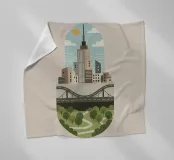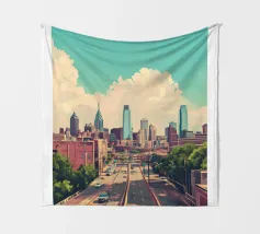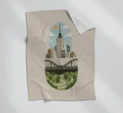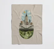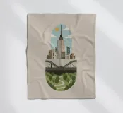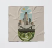 Deze illustratie legt de dualiteit van het moderne stadsleven vast, waarbij de hoogbouw van de stad naadloos overgaat in de rust van de natuur. Een gestileerde, compacte weergave toont imposante wolkenkrabbers en transportinfrastructuur (wegen, bruggen) boven een levendig groen park met kronkelende paden en weelderige bomen. Het is een visuele weergave van duurzame stadsplanning en de noodzakelijke coëxistentie van ontwikkeling en groene ruimten binnen één samenhangende omgeving. Stedenbouw, Stadsgezicht, Architectuur, Groene ruimte, Duurzaamheid, Park, Brug, Wegen, Minimalistisch, Plat ontwerp, Milieuvriendelijk, Modern, Natuur