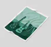 Een unieke en fascinerende artistieke stijl. Twee gitaren in prachtig detail afgebeeld,