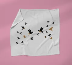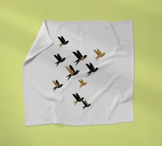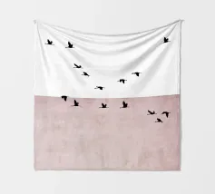 Dit minimalistische ontwerp toont twee zwaluwen die sierlijk door de lucht glijden. De zwart-witte illustratie en de eenvoudige, heldere achtergrond geven het motief een tijdloze en elegante uitstraling. Dit ontwerp is perfect voor liefhebbers van natuurmotieven en minimalistische kunst en brengt rust en lichtheid in elke kamer. Of het nu als muurschildering, kussen of mok is, dit motief is een stijlvol en modern accent voor elk huis en past bij verschillende interieurstijlen.