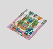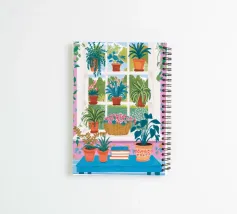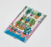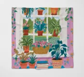 Een illustratie van een bloembakkentuin vol kleurrijke planten en bloemen. Het is een charmante, gedetailleerde en vrolijke viering van tuinieren in kleine ruimtes.