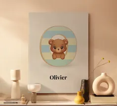 Motief voor kinderen met initiaal en dier. Aanpasbare illustratie voor de kinderkamer. Ideaal als cadeau.