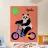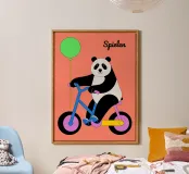 "Panda met fiets en ballon" is een kleurrijke en schattige illustratie met een panda die plezier heeft op een fiets terwijl hij een ballon draagt.