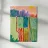 Een abstract kunstwerk dat lijkt op een lappendeken, met verschillende rechthoekige kleurvlakken: blauwe en witte verticale strepen, effen groen en licht geelgroen, mogelijk een gestileerd kustlandschap.