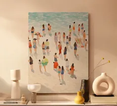 Isabelle is a Belgian artist based in Portugal. She draws inspiration from the quiet rhythm of daily life. The way light falls gently across a room, the warmth of familiar interiors, or the elegance of simple objects arranged in space. A walk through the fisherman’s town where she lives often sparks new ideas: people sunbathing, friends playing cards, and the details of everyday interiors all become sources of reflection and creation. In her studio, she reflects on these fleeting details and transforms them into compositions that honor stillness, memory, and presence. When she is not painting, she enjoys running, surfing, visiting flea markets, and exploring new places. These experiences, along with the small moments that linger in memory, weave their way into her work, creating pieces that invite others to slow down and connect with the gentle beauty of life.