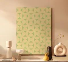 Dit elegante ronde patroonontwerp heeft vloeiende, golvende elementen die een gevoel van kalme beweging en harmonie creëren. Het kunstwerk is uitgevoerd in een rustgevende combinatie van groen en zacht pastelbeige en voelt zowel modern als tijdloos aan. De organische, golvende lijnen geven het patroon een zacht ritme, waardoor het een perfecte keuze is voor textiel, interieurdecoratie of briefpapier. De cirkelvormige compositie voegt een evenwichtig en gecentreerd gevoel toe - ideaal voor iedereen die houdt van abstract, vloeiend design met een verfijnd kleurenpalet.