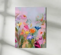 This abstract natural artwork combines soft pastel shades of pink, orange, light grey and petrol to create a harmonious composition of organic shapes and fine structures. Delicate brushstrokes and subtle textures create a calm, almost dreamy atmosphere. Ideal for modern rooms looking for a balance of naturalness, lightness and artistic expression.