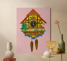 Productbeschrijving: Dit sierlijke ontwerp is voorzien van een gedetailleerde illustratie van een klassieke koekoeksklok in vintage-stijl. Met zijn ingewikkelde houtsnijwerk, traditionele elementen zoals de hangende gewichten en het dak van gesneden bladeren, belichaamt het motief tijdloze elegantie en een vleugje nostalgie. De combinatie van precieze lijnen en gearceerde details creëert een verfijnde, handgetekende look die perfect is voor liefhebbers van retro en klassieke ontwerpen. De subtiele beige achtergrond benadrukt de zwarte illustratie.