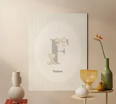 Motief voor kinderen met initiaal en dier. Aanpasbare illustratie voor de kinderkamer. Ideaal als cadeau.