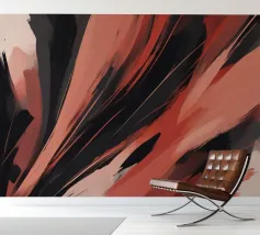 Abstract kunstwerk met veel energie en emotie, sterke, heldere kleuren (rood, geel, zwart), spannende vormen en lijnen. Vuur en water.