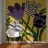 Een levendige, abstracte tuinscène weergegeven als een lappendeken van gestippelde en gedessineerde bloemen tegen een donkere achtergrond. Het kunstwerk is een vrolijke en fantasierijke interpretatie van een bloeiende tuin.