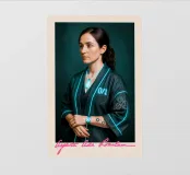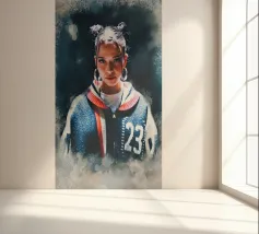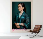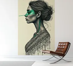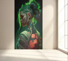 Een visionair portret van Ada Lovelace - de eerste vrouwelijke programmeur in de geschiedenis, geherinterpreteerd in een futuristische cyberpunkstijl. Tatoeages, technische gadgets en de binaire code "0/1" combineren historische genialiteit met moderne esthetiek. Voor alle fans van vrouwelijke empowerment, IT-cultuur en digitale kunst. Perfect als poster voor studeerkamers, galerieën of moderne leerruimtes.