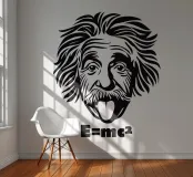 Albert Einstein is beroemd om zijn baanbrekende bijdragen aan de natuurkunde, in het bijzonder de ontwikkeling van de relativiteitstheorie. Het werk van de Duitse Nobelprijswinnaar revolutioneerde ons begrip van ruimte, tijd en zwaartekracht. Einstein gebruikte zijn roem om campagne te voeren voor vrede, internationaal begrip en sociale rechtvaardigheid. Hij was ook een door en door humoristisch en onconventioneel persoon, waardoor hij een populair cultfiguur werd. Laat zien dat je wetenschap en humor begrijpt met dit abstracte, minimalistische ontwerp.