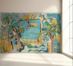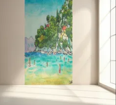 Strak en modern of speels en gedurfd, het ontwerp weerspiegelt de vrijheid van beweging en een connectie met zon, zee en zelfexpressie. Tegen strandscènes, zwembaden of abstracte achtergronden straalt het stuk warmte, energie en individualiteit uit - een visuele ode aan zonnige dagen en zorgeloze momenten.
