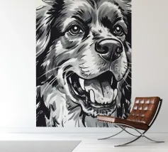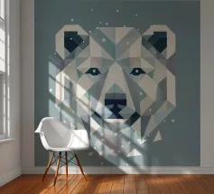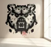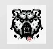 Een berengezicht afgebeeld in zwart-wit met aquarelachtige vlekken die de esthetiek van een Rorschach-test oproepen. Dit kunstwerk doet een beroep op onze interpretatieve vaardigheden, waardoor het een ideale keuze is voor berenliefhebbers die houden van het plezier van perceptie.