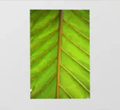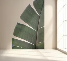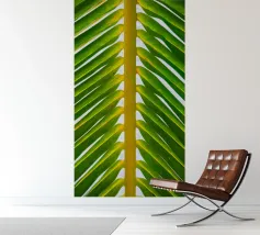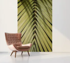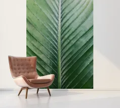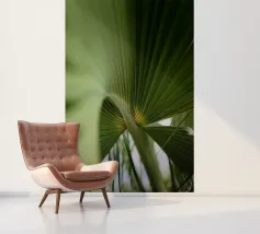 De palmbladnerf loopt gedurfd door het midden, een sterke middennerf van waaruit fijnere nerven zich naar buiten vertakken, wat structuur en balans geeft aan de elegante bladeren.