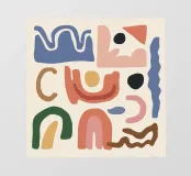 A collection of abstract, earthy toned shapes, including arches, lines, and curves, arranged in a balanced, bohemian style composition.